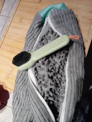 Stop worrying about scuffed gym shoes or muddy work boots. Use the shoe washing bag to keep pairs intact in the washer and the soft bristle brush for spot cleaning, restoring a neat, ready-to-wear look in minutes.